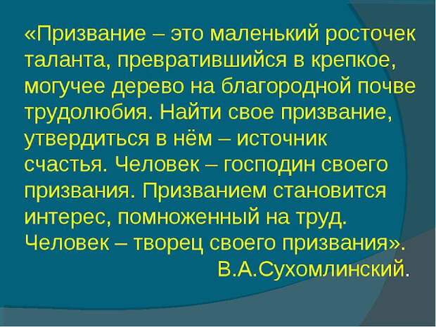 Найти свое призвание – значит быть счастливым. Иметь востребованную профессию – значит быть успешным. Если эти факторы у вас совпали, вам очень повезло. Если нет, значит надо двигаться в этом направление, отучится, поменять работу и привести свои дела в порядок.